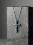 Хрестик 2,3 см на ланцюжку з голубими фіанітами
