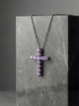 Хрестик 2,3 см на ланцюжку з пурпурними фіанітами